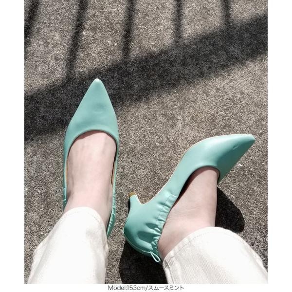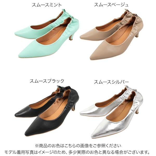 パンプス ヒール ポインテッドトゥ フェミニン ギャザー
