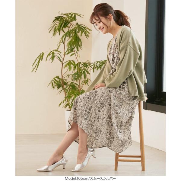 パンプス ヒール ポインテッドトゥ フェミニン ギャザー レザー フェイクレザー レディース シューズ 大...