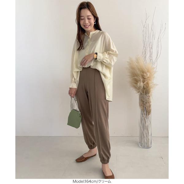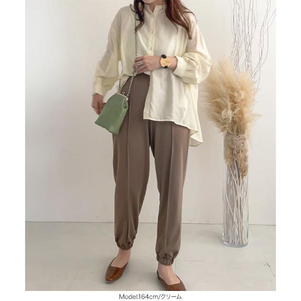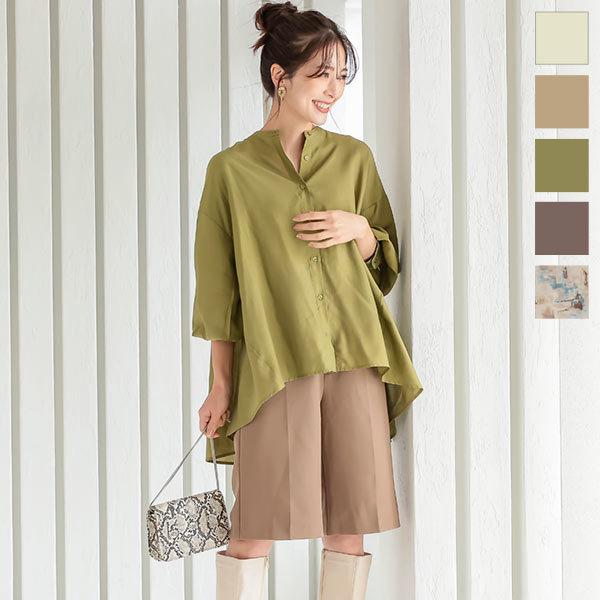 フレアシャツ レディース トップス 羽織り 長袖 秋 体型カバー 上品 バンドカラー ギャザー C5623