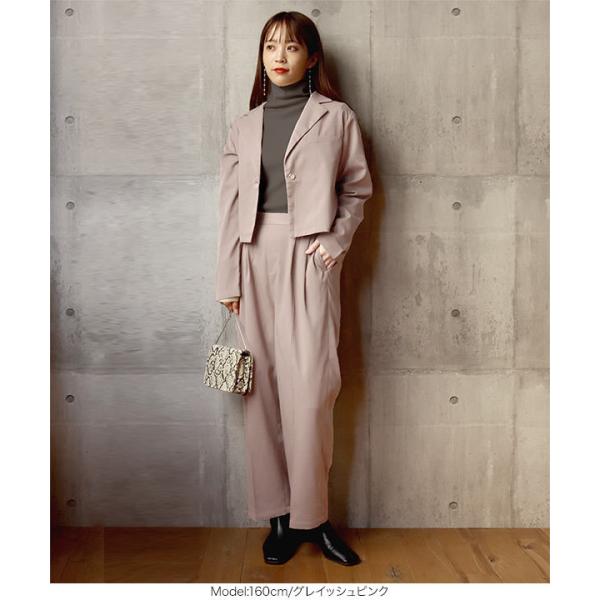 オフィス バックウエストゴムセンタープレス入りゆるシルエットストレートパンツ レディース セットアップ M3412