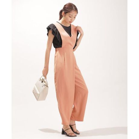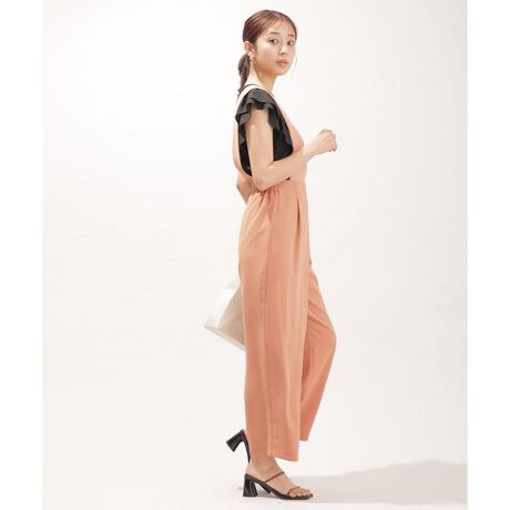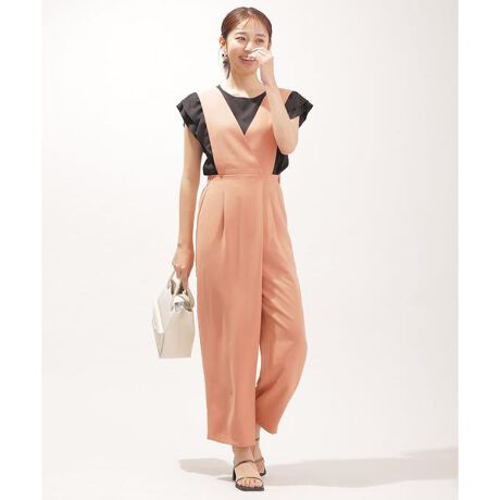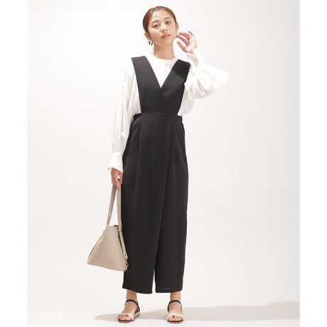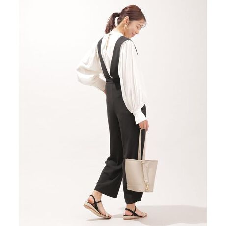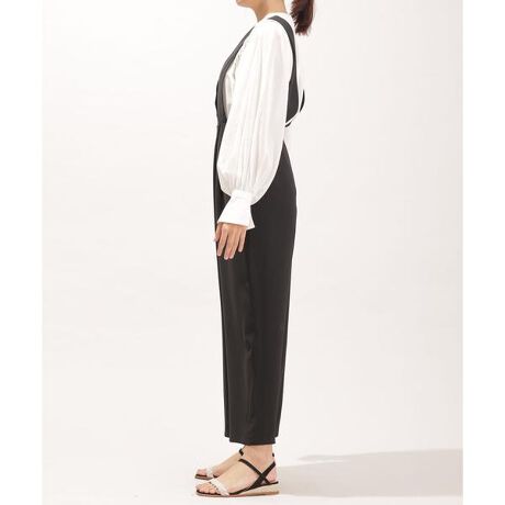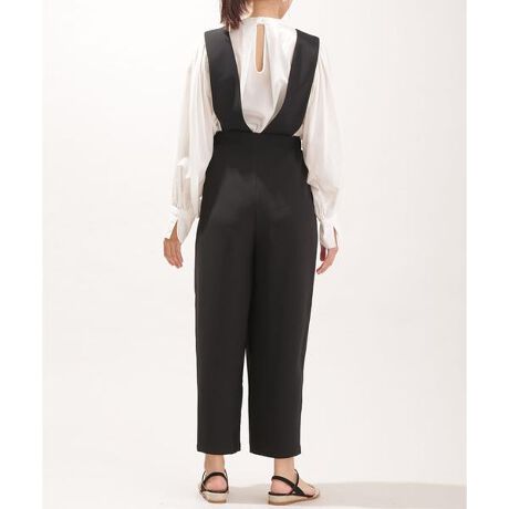 ・太めのサスペンダーがポイントになるサロペットパンツ