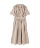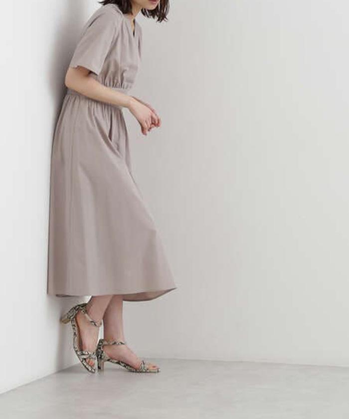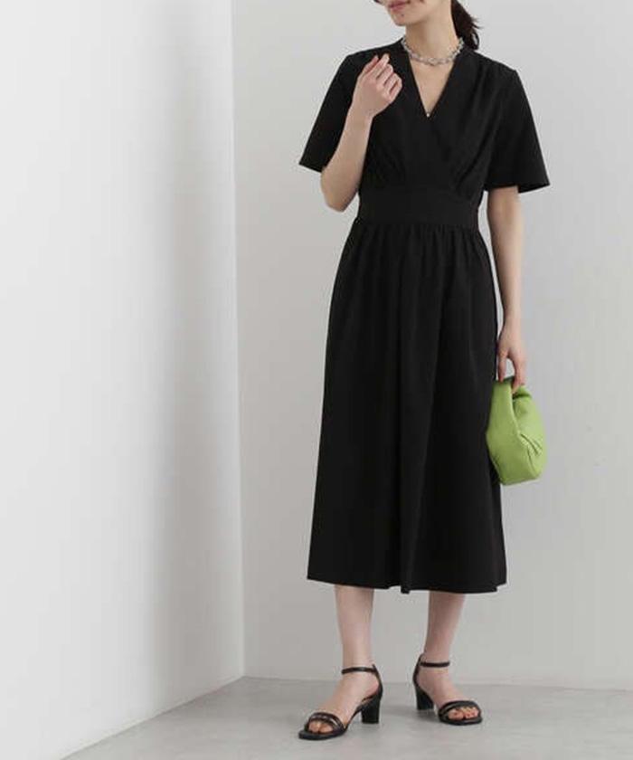 太幅のウエストベルトで切り替え、後ろは細かく入れたシャーリングゴム仕様。フィット&フレアシルエットが女性らしさを出しながら、リラクシーな着心地にもこだわったカシュクールワンピース。二の腕がしっかりカバー出来るやや広めの袖口もポイントです。シューズやアクセの組み合わせ次第で、カジュアルからきれいめお出かけコーデと、違った雰囲気が楽しめます。