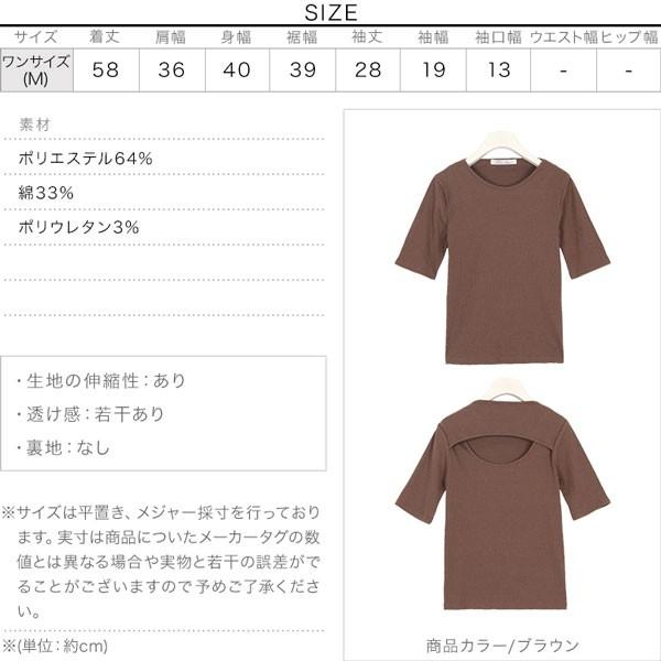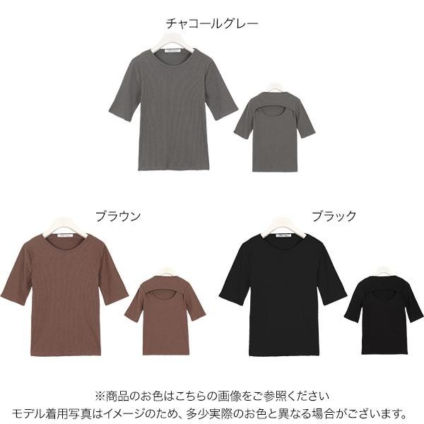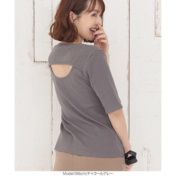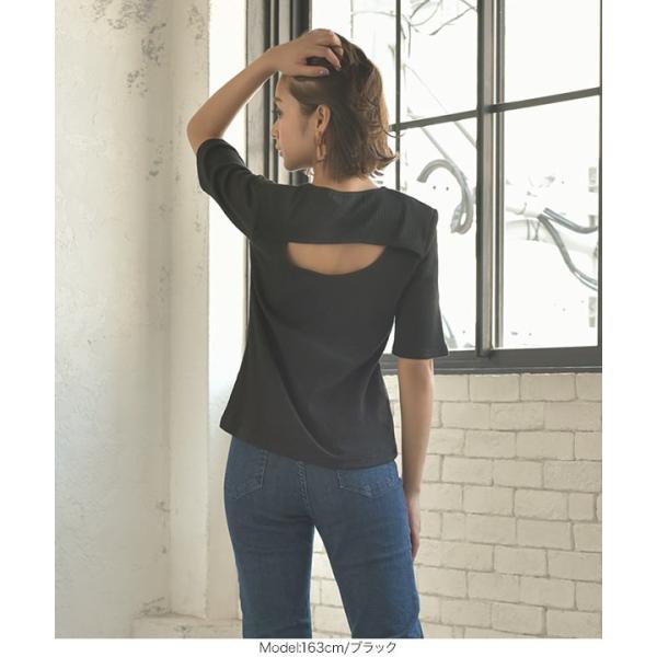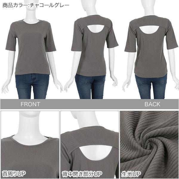 カットソー トップス レディース 丸首 バックオープン 細見え 五分袖 バックシャン C4015