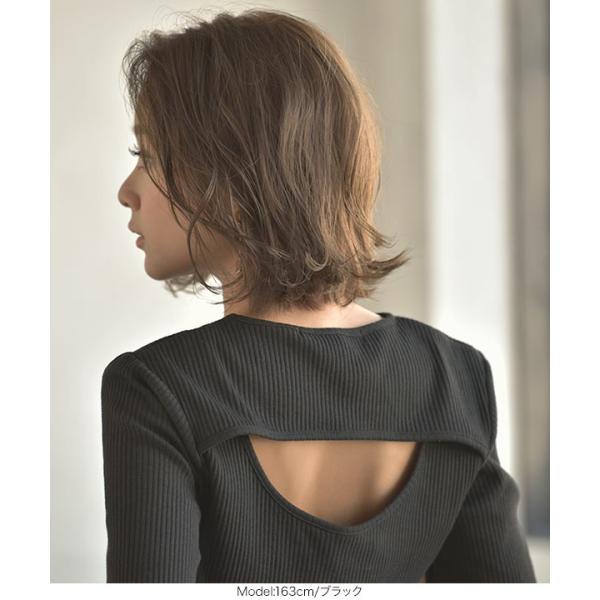 丸首 バックオープン五分袖テレコカットソートップス レディース バックシャン バックコンシャス 細見え C4015