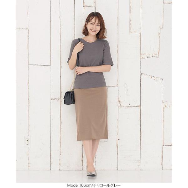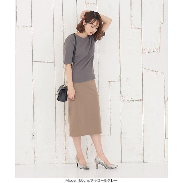 気になる二の腕をさりげなくカバーしてくれる5分袖のスリーブが嬉しいポイント。