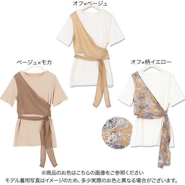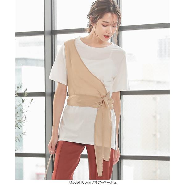Tシャツ レディース トップス 半袖 ビスチェ 重ね着 夏 レイヤード 綿 ゆったり C4855
