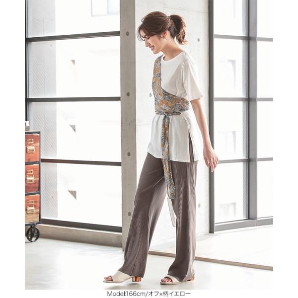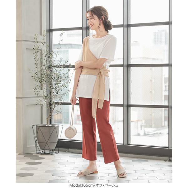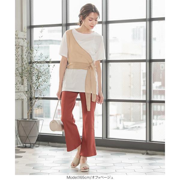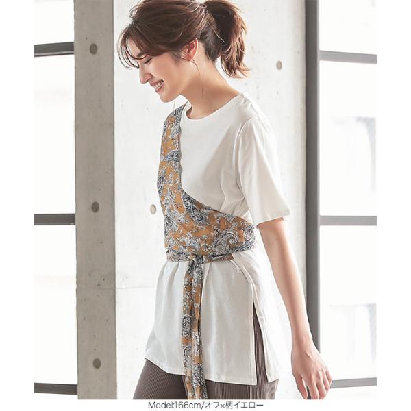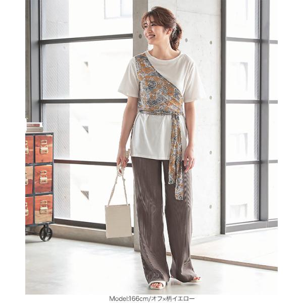 夏 レイヤード風サイドスリットTシャツ レディース トップス 半袖 ビスチェ 重ね着 大人 綿100 ゆったり リラックス C4855