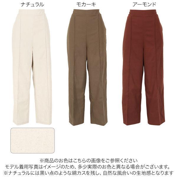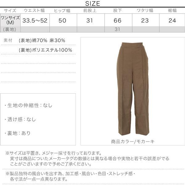 リネン混生地バックウエストゴム裏地付きワイドパンツ