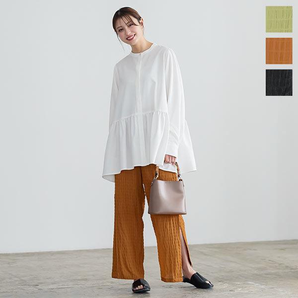 ウエストゴムで着心地楽ちん+裾スリットが脚を自然とスッキリ見せてくれるのも嬉しいポイントです。