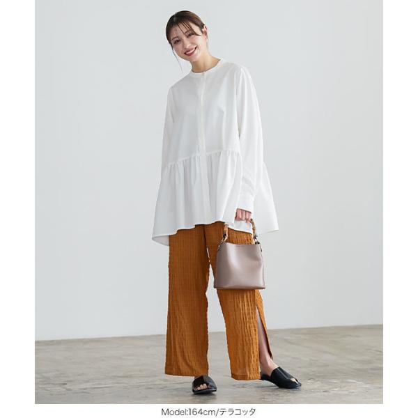 柄 サイドスリットシアーパンツ レディース ボトムス シアー スリット ワイドパンツ チェック M3597