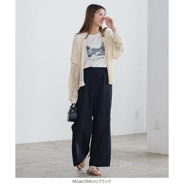 ワイドパンツ シアー 透け感 柄 サイドスリット レディース