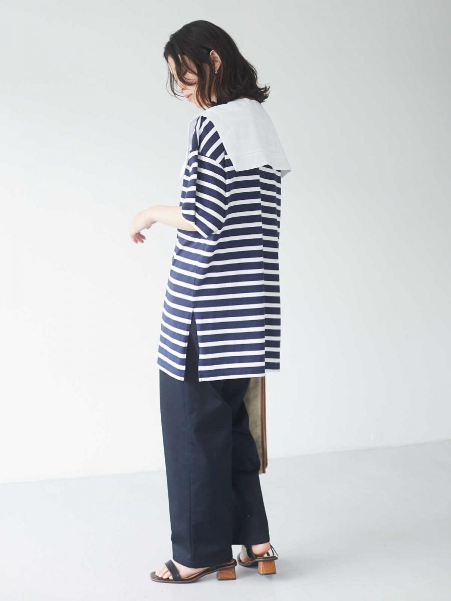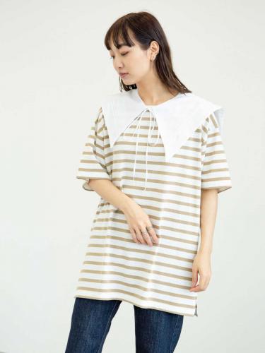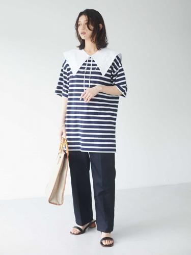 ガーリーな襟デザインで取り入れるだけで旬顔コーデが完成するチュニック。カジュアルな表情を添えるボーダー柄がコントラストのきいたルックスを叶えます。ゆったりシルエットを引き締めるサイドスリットも◎襟は取り外し可能なのでその日の気分でコーデを楽しめる1着です。