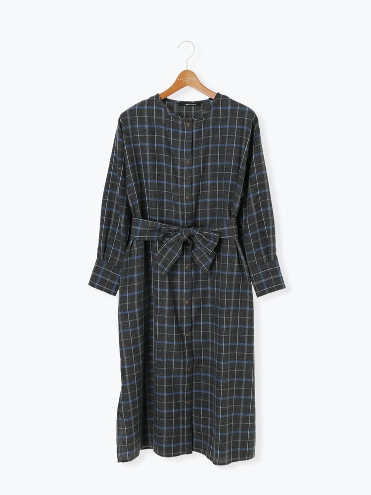 カラー:グレー / 48 商品名:チェックノーカラーワンピース LS