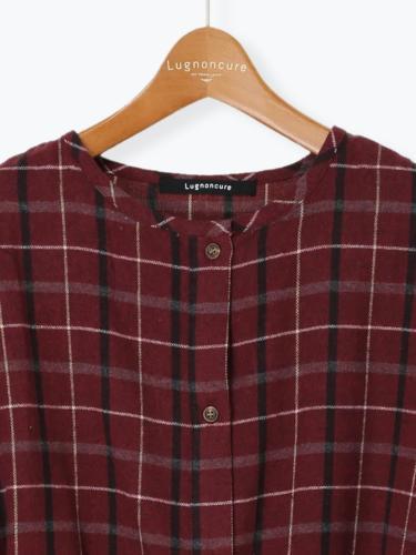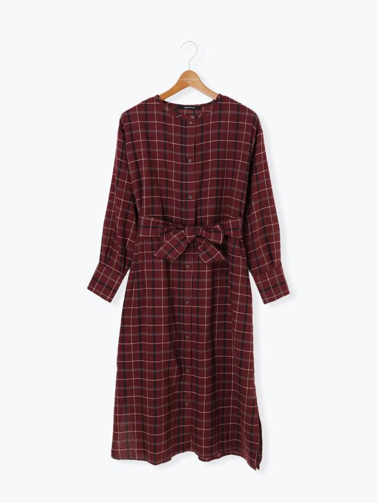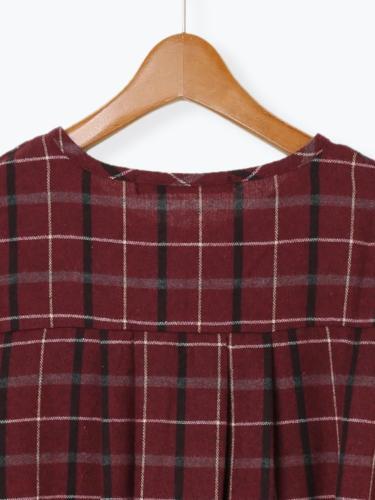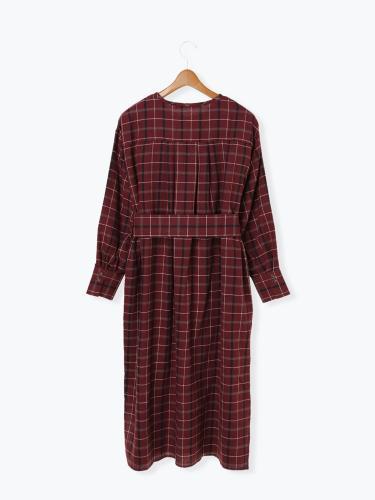 カラー:ボルドー / 15 商品名:チェックノーカラーワンピース LS