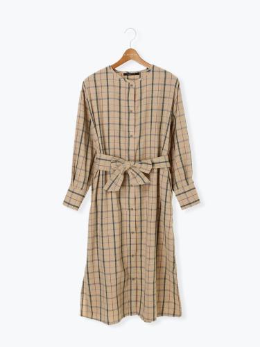 カラー:ベージュ / 41 商品名:チェックノーカラーワンピース LS