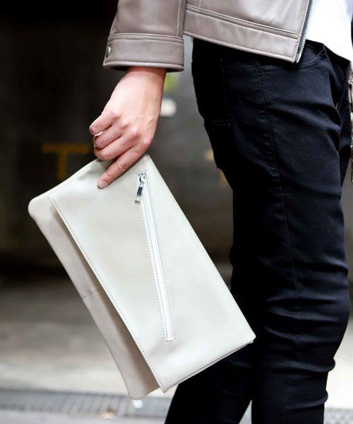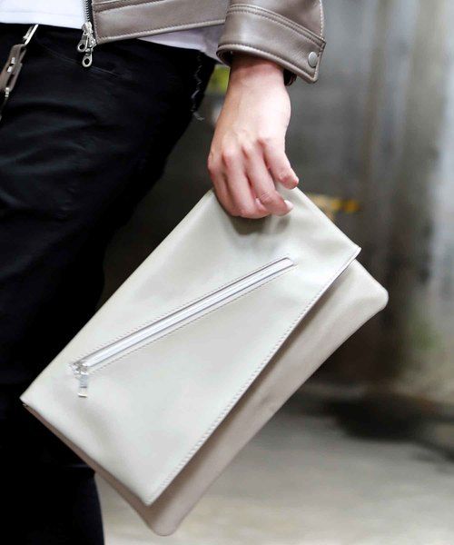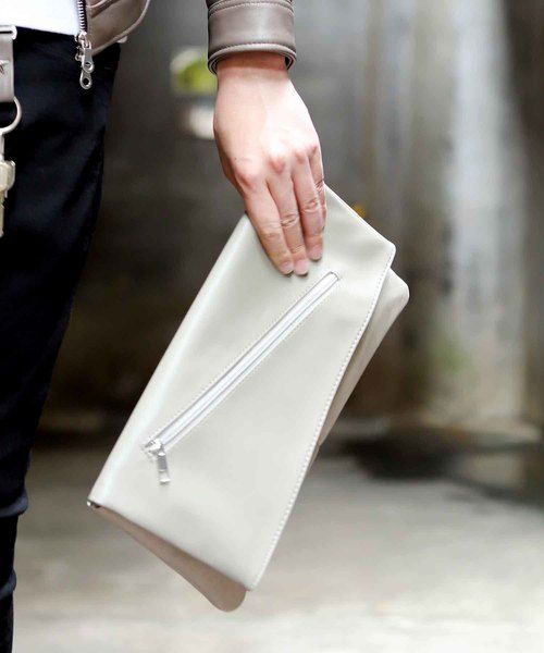 ショルダーとしても使えて万能。シンプルかつ完成されたデザインのクラッチ&ショルダーバッグ。二つ折りタイプのクラッチはまさにど本命。本革ライクな合皮素材だから手入れも楽でガシガシ使用できます。見た目のコンパクトさからは想像出来ない収納力を持たせたので、驚きの使いやすさです。そして実はショルダーバッグとしても使える2WAY仕様。少し手荷物が増えた・・といった場合は一瞬でショルダーにチェンジ。折り畳みを開けると、メインになる収納部分。中には大きめのジッパーポケットをご用意、外側(折り畳みの内側)には大きなポケットが2つあり、大事なものを分けながら切符や鍵など、すぐに取り出したい大切な物を仕舞えます。外側(折り畳みの反対側)にも大ポケットをご用意、ユーザビリティの高いアイテムに。コーデを選ばないので、大事なものを入れておいて外出時にさっと気軽に使用できます。