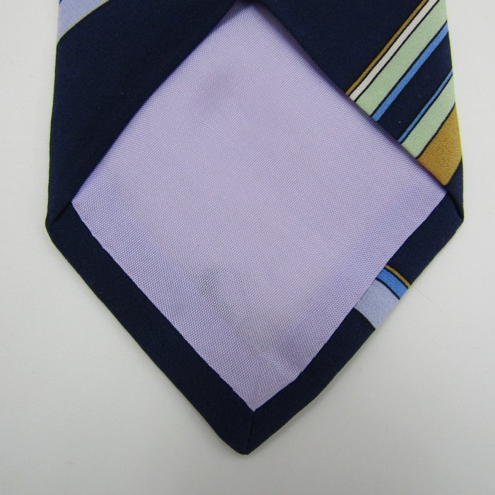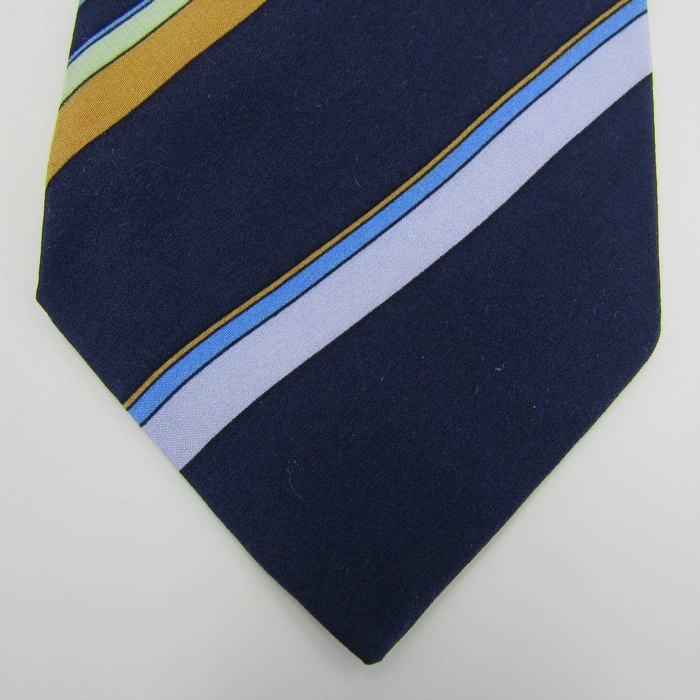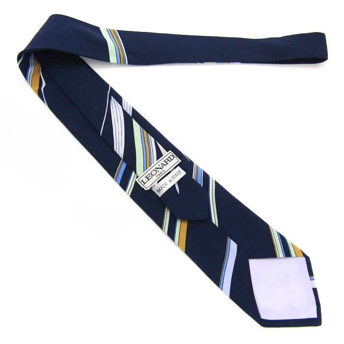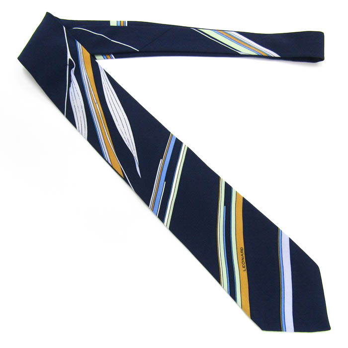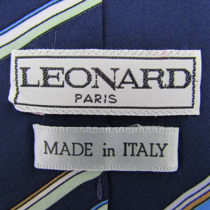 レオナール ブランド ネクタイ ロゴ ストライプ柄 パネル柄 イタリア製 PO メンズ ネイビー LEONARD 【中古】