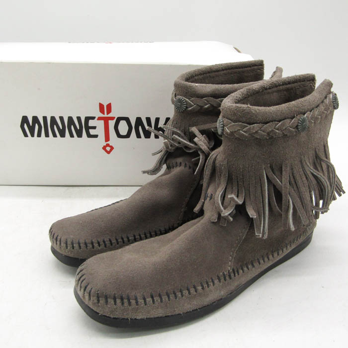 ミネトンカ ブーツ ハイトップバックジッパー ブランド シューズ 靴 レディース 7サイズ グレー Minneto...