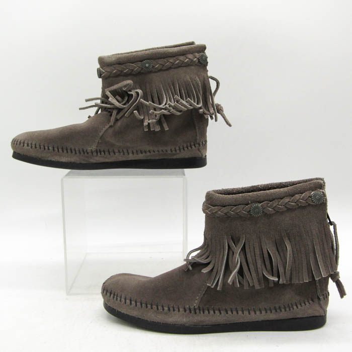 ミネトンカ ブーツ ハイトップバックジッパー ブランド シューズ 靴 レディース 7サイズ グレー Minnetonka 【中古】