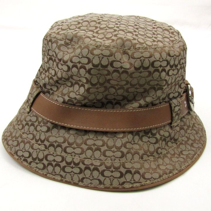 コーチ ハット ミニシグネチャー ベルト キャンバス レザー 帽子 ブランド レディース P/Sサイズ ブラウン COACH 【中古】