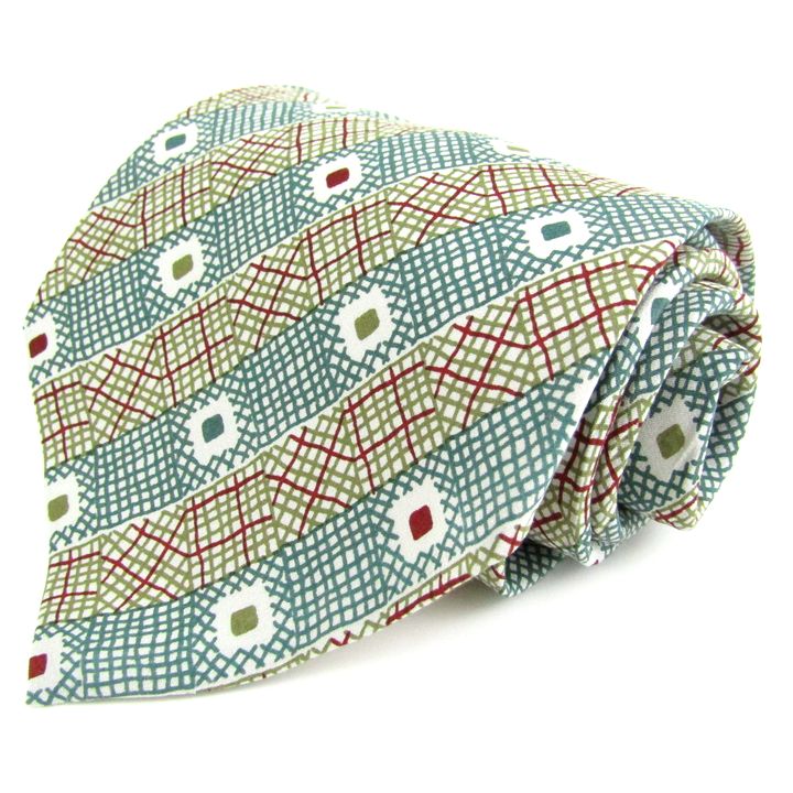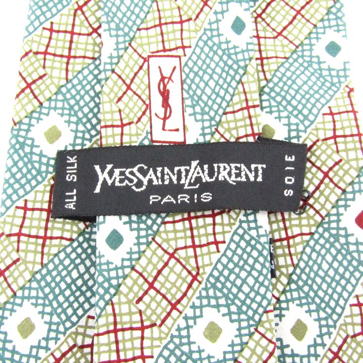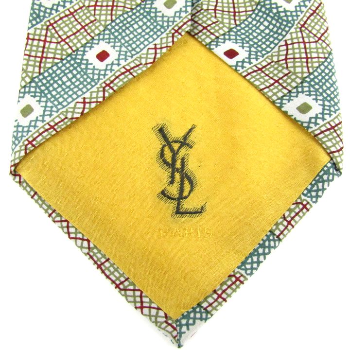 イヴ・サンローラン ネクタイ ワイドタイ YSL チェック柄 シルク ブランド メンズ グリーン系 YVES SAINT LAURENT 【中古】