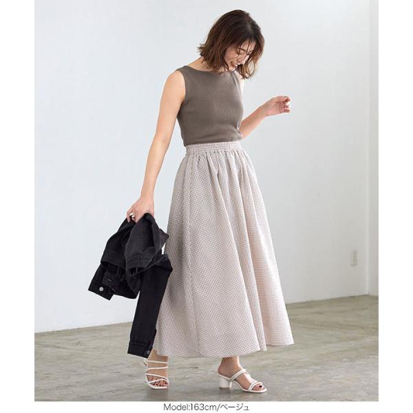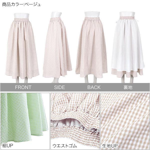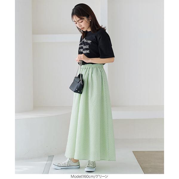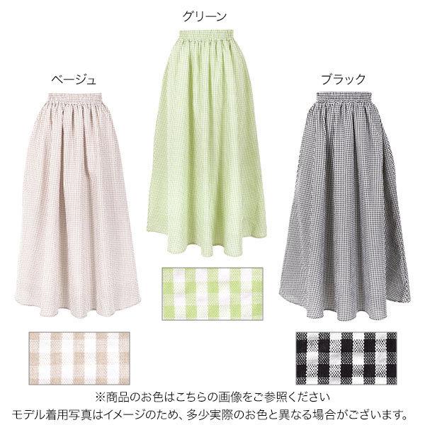 スカート マキシスカート ロング マキシ フレアスカート レディース 夏 春 ウエストゴム ギンガムチェック M3581