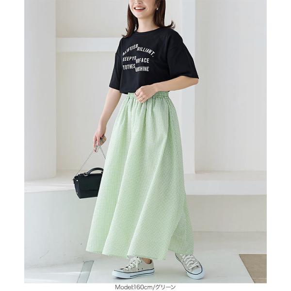 ウエストゴム ギンガムチェックギャザーマキシスカート ロングスカート レディース チェック柄 ギャザースカート フレアースカート M3581