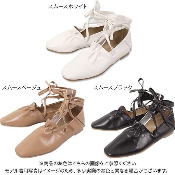 パンプス レースアップ 春 スクエアトゥ ギャザー フラット ぺたんこ 歩きやすい 白 黒 レディース 靴 シューズ I2030