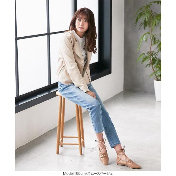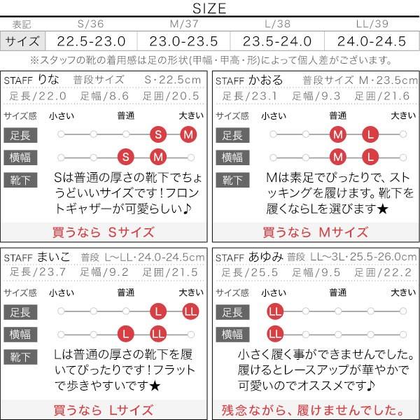 フロント部分のギャザーとレースアップがポイントのフラットシューズ。