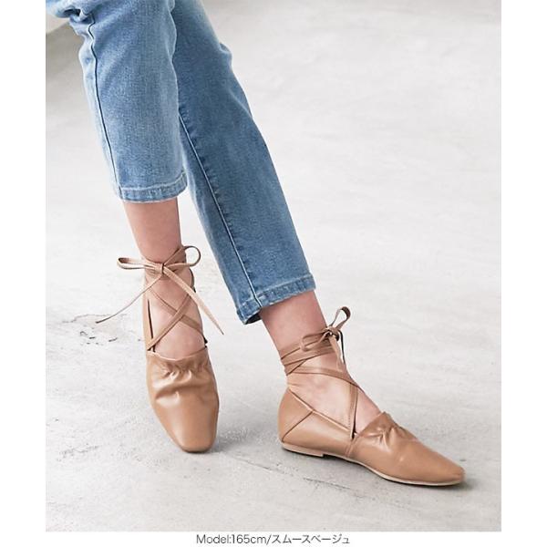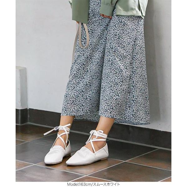 パンプス レースアップ 春 スクエアトゥ ギャザー フラット ぺたんこ 歩きやすい 白 黒 レディース 靴 ...