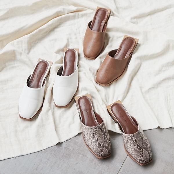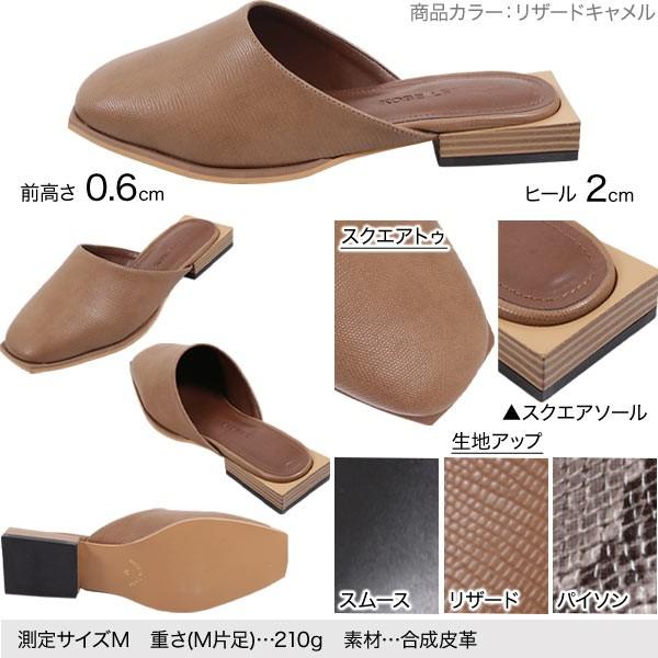 春 スクエアソールフラットミュール レディース 靴 シューズ ローヒール リザード パイソン スムース 白 黒 リゾート I2058
