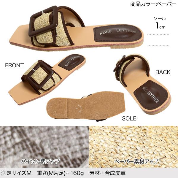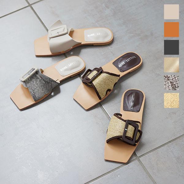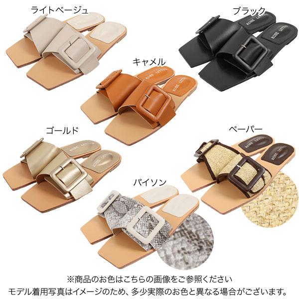 春夏 スクエアカットBIGバックルワンベルトサンダル レディース シューズ 低ヒール ぺたんこ ワンマイル おしゃれ 夏 I2119