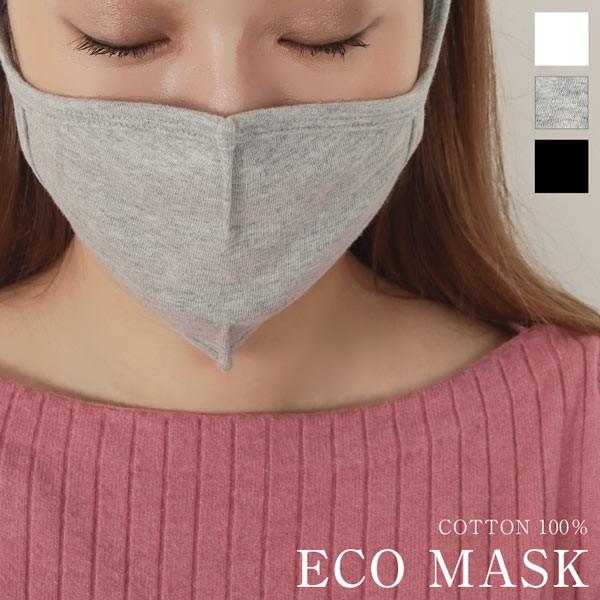 マスク 洗える M L コットン100 エコマスク 1枚入り 綿 花粉 予防 無地 布 伸縮性 白 グレー 黒 J849