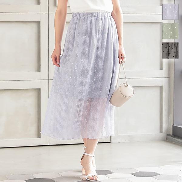 スカート チュール ドット プリーツスカート 夏 膝下 透け 大人 シアー フェミニン 黒 レディース ボトムス M2955