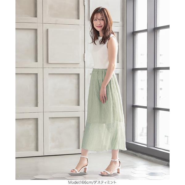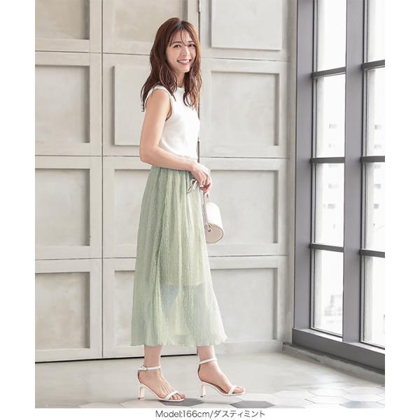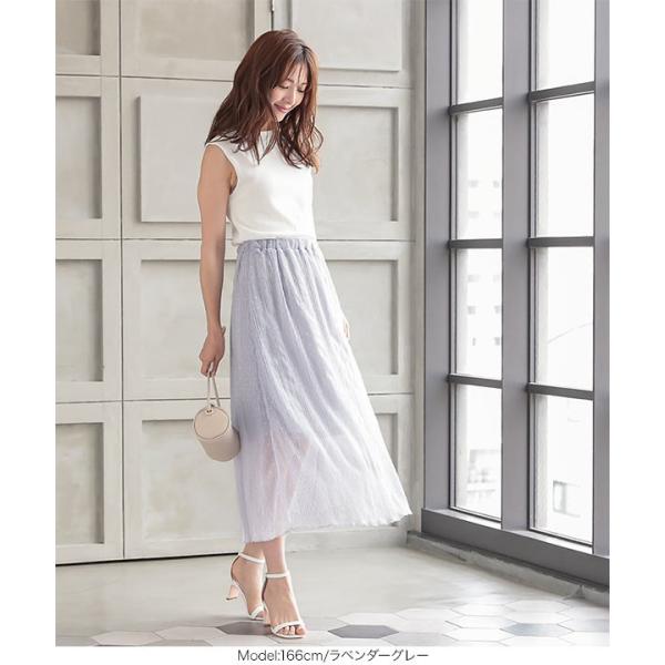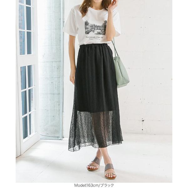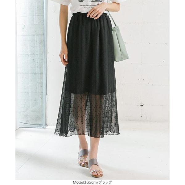 スカート チュール ドット プリーツスカート 夏 膝下 透け 大人 シアー フェミニン 黒 レディース ボト...