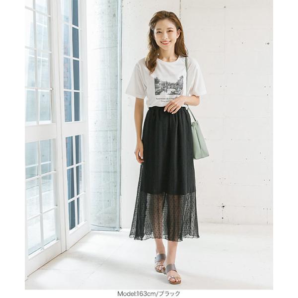 スカート チュール ドット プリーツスカート 夏 膝下 透け