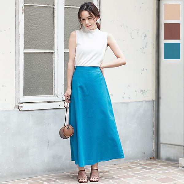 夏 綿麻バックゴムセミフレアースカート レディース ボトムス ロング 透け 大人 きれいめ リラックス シンプル M2956