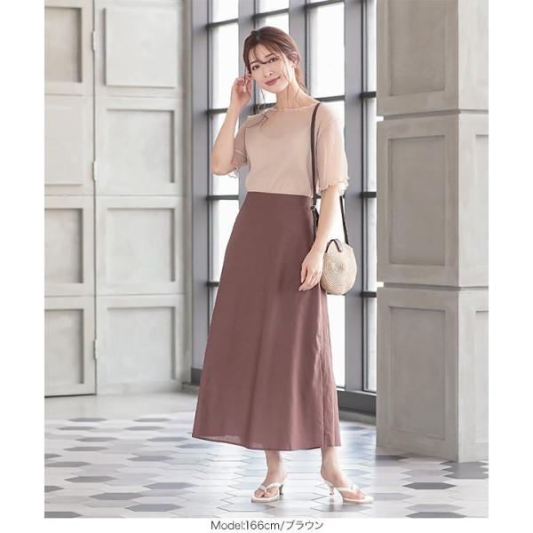 スカート フレアスカート レディース ボトムス 夏 綿 麻 セミロング 透け きれいめ リラックス M2956