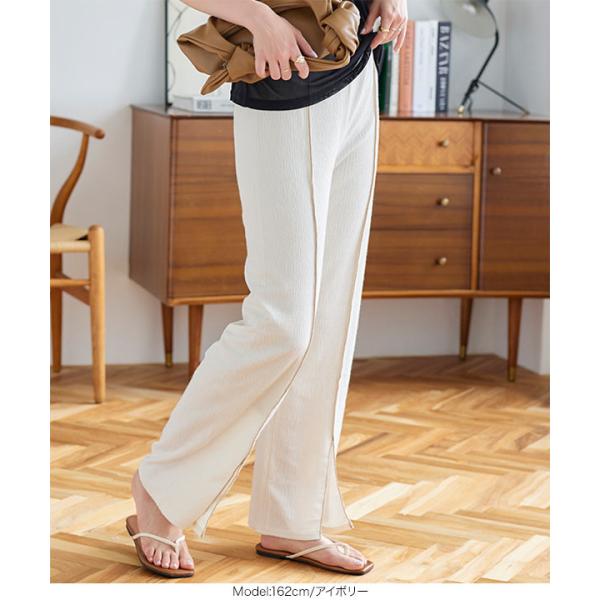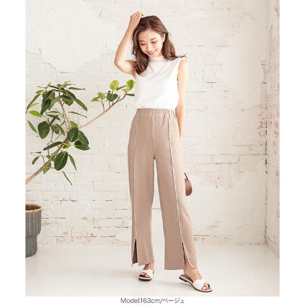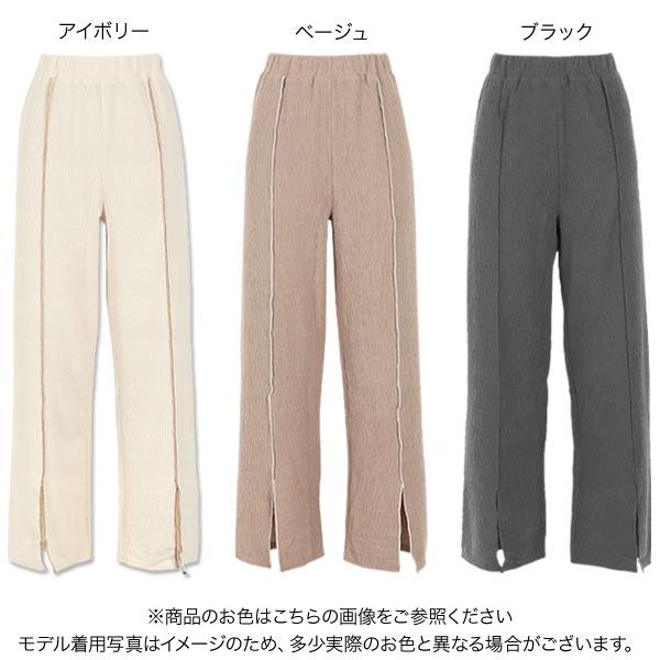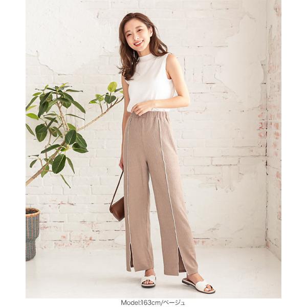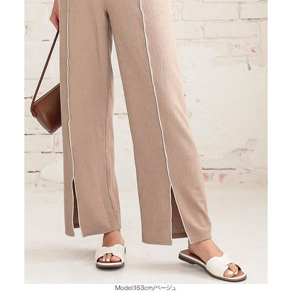 夏 メロウパイピングスリットランダムリブパンツ レディース ボトムス ロング 大人 きれいめ リラックス 白 黒 M2957