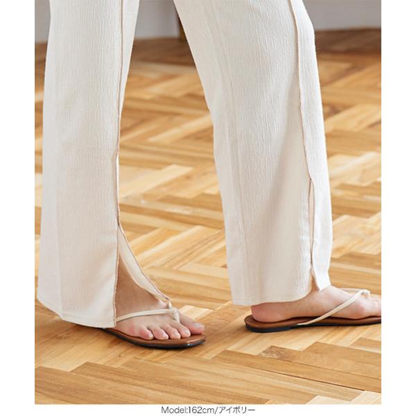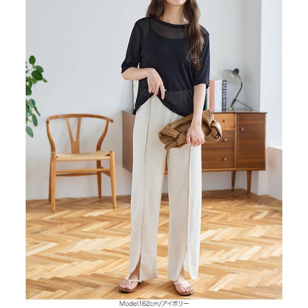 リブパンツ スリット 夏 メロウパイピング ロング 大人 きれいめ リラックス ウエストゴム レディース ボトムス M2957