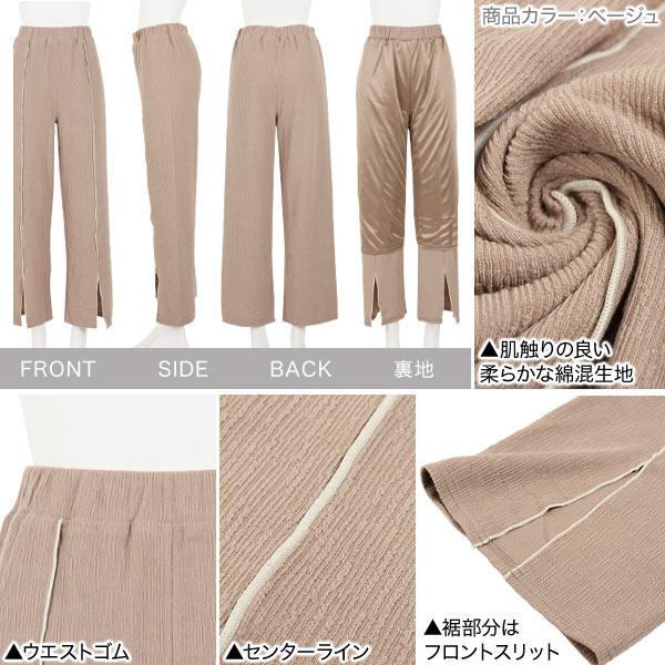 リブパンツ スリット 夏 メロウパイピング ロング 大人