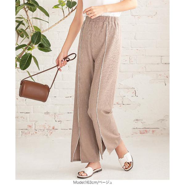 リブパンツ スリット 夏 メロウパイピング ロング 大人 きれいめ リラックス ウエストゴム レディース ...