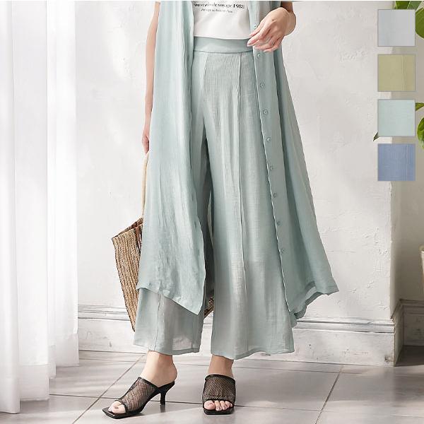涼し気な風合いのワイドパンツ。