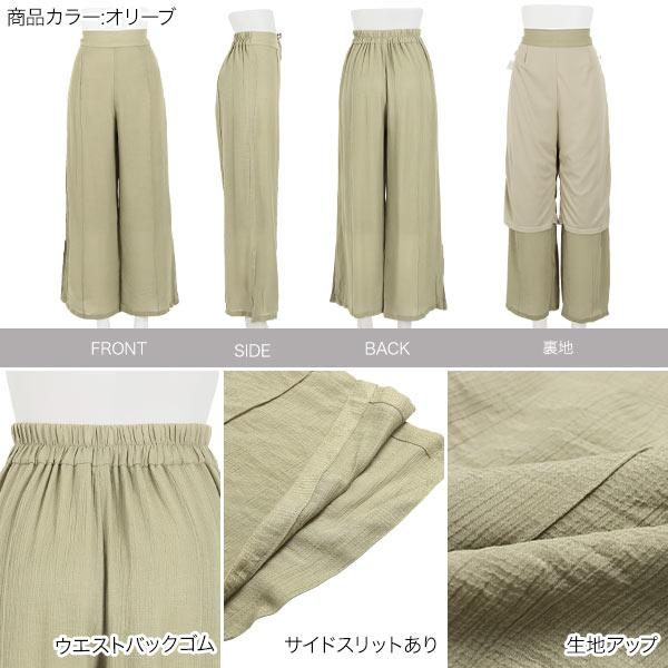 ワイドパンツ ゆったり サイドスリット 脚長 透け感 バックゴム 体型カバー 大人 レディース ボトムス M2967