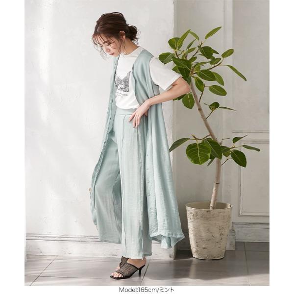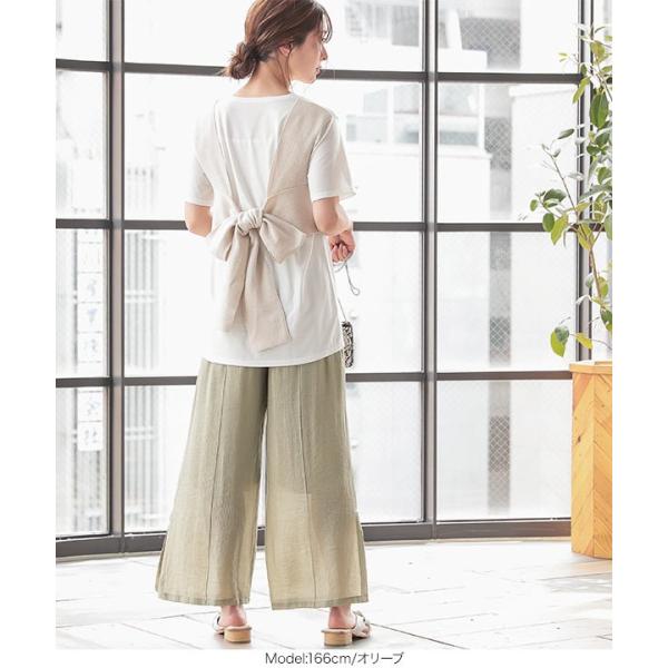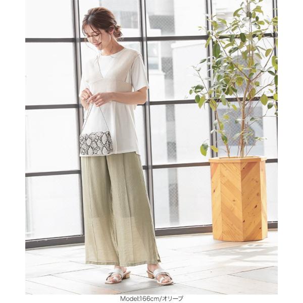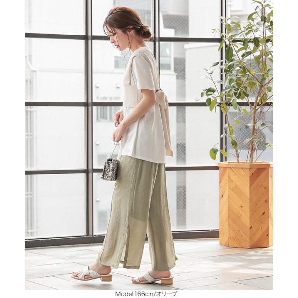 ワイドパンツ ゆったり サイドスリット 脚長 透け感 バックゴム 体型カバー 大人 レディース ボトムス M...