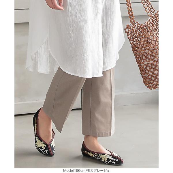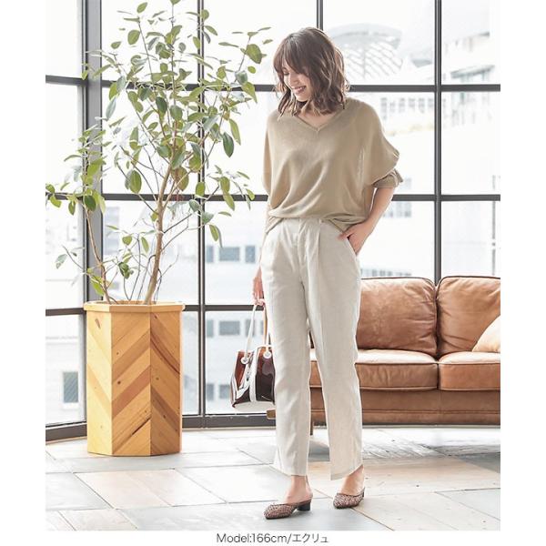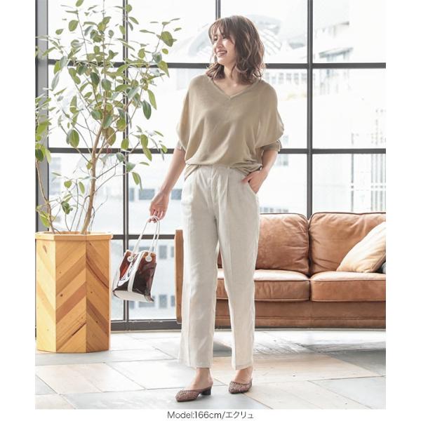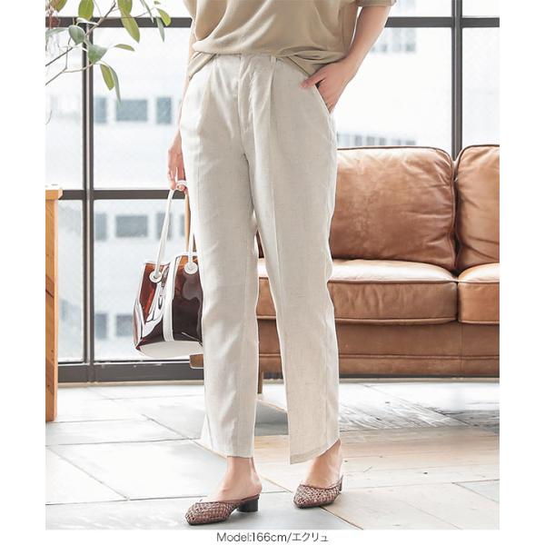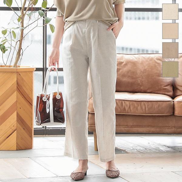 パンツ リネンタッチ ストレートパンツ センタープレス 美脚