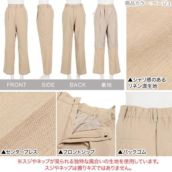センタープレスバックゴムリネンタッチストレートパンツ