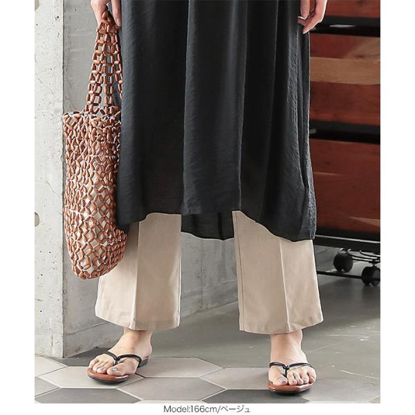 パンツ リネンタッチ ストレートパンツ センタープレス 美脚 バッグゴム ボトムス ロング ナチュラル レ...