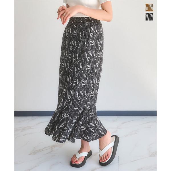 バックウエストゴムボタニカルフラワー花柄マーメイドスカート