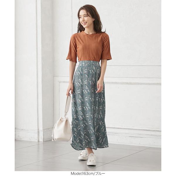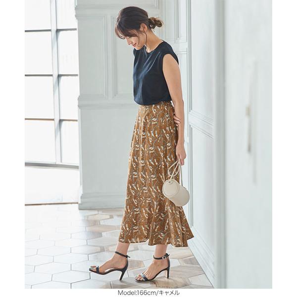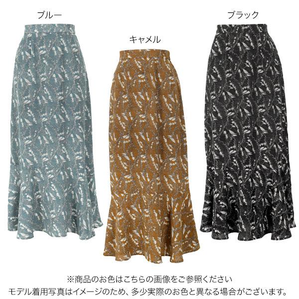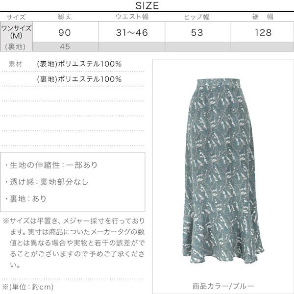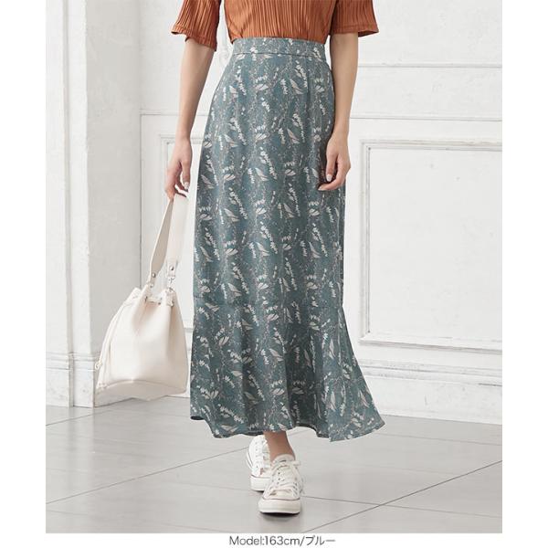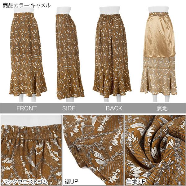 スカート レディース 小花柄 ロング バックウエストゴム ボタニカル フラワー花柄 マーメイド丈 M3000